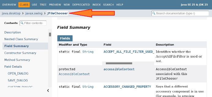 <https://docs.oracle.com/en/java/javase/25/docs/api/java.desktop/javax/swing/JFileChooser.html>,
