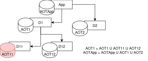 Basically, the red AOT11 contains a poisoned class that shares the fully qualified name with a class name in say D2. In this case, the App was loading the class from the AOTCache (AOTApp) instead the benign class in D2.