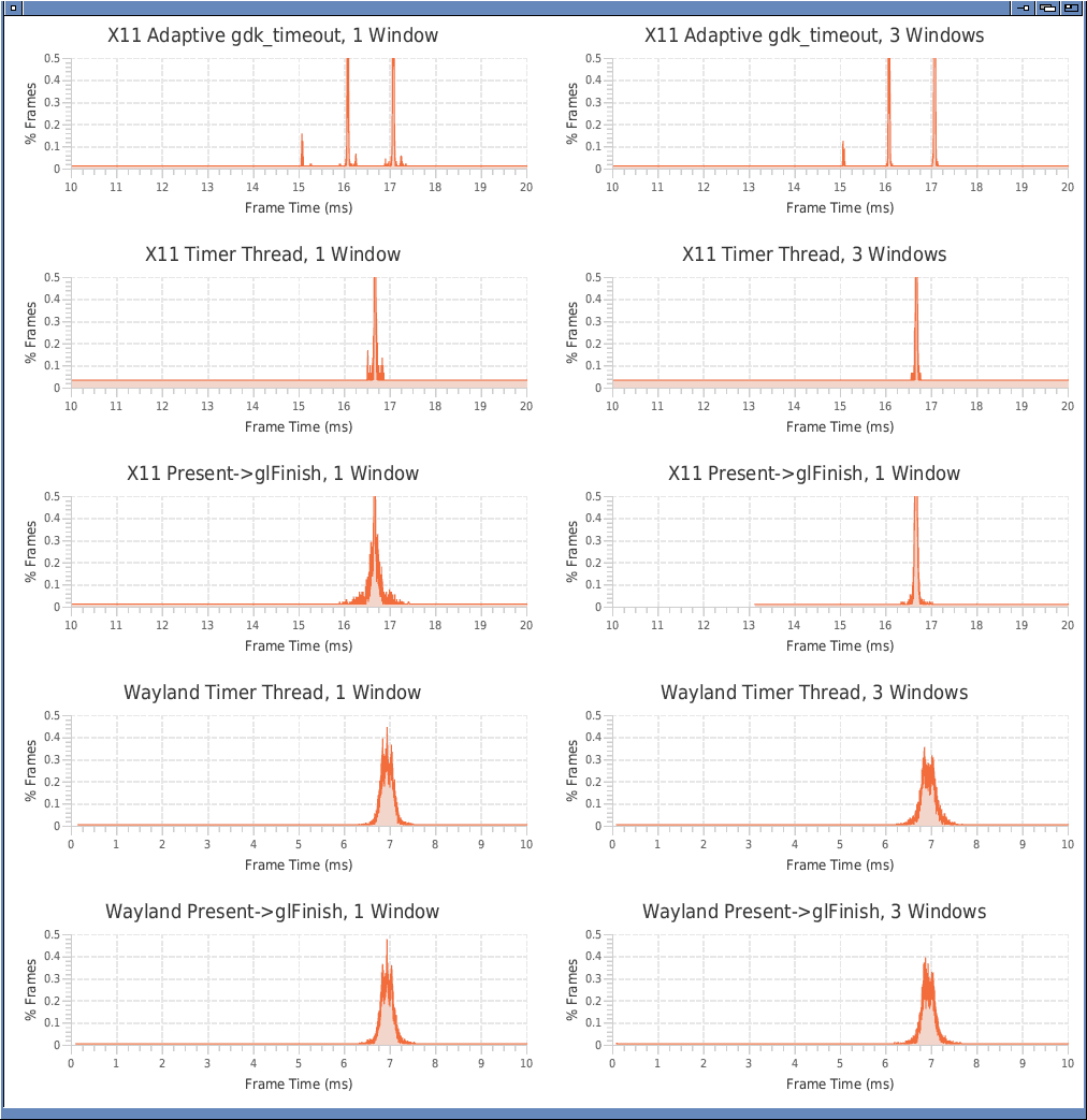 Wayland is on a machine with a frame-rate of 143.88, and the others 59.95.